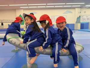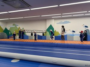 トランポリンでたくさんジャンプしました。