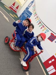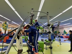 さっそく遊び始めました。高さがある遊具でダイナミックに遊びました。飛び乗ったり、乗り越えたり、坂を駆け上がったり子ども達の成長を感じます。