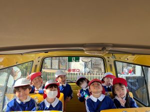 バスに乗ってみんなウキウキ出発です。
