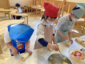 お給食の先生がシュガートーストも作らせてくれ、一生懸命パンに塗っていました🍞