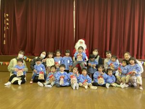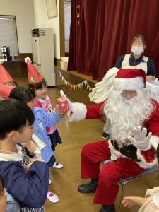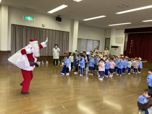 みんなの歌声を聞いて、なんとサンタクロースのおじさんが来てくれました🎅