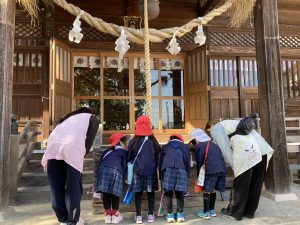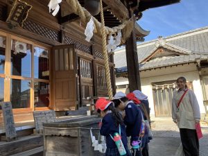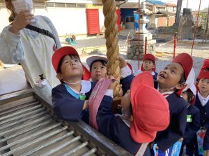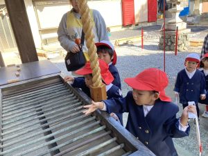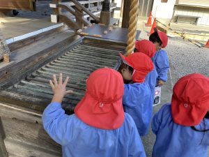 七五三についてのお話を聞きました。それからお参りの仕方も教えてもらいました。