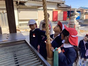 年少クラスのお友達は興味深そうに鈴を鳴らしています。
