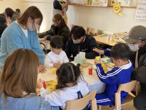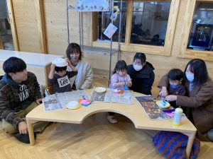 いつもコーナー遊びで製作をしているので、毛糸やモール、シールなど様々な素材を用いて作り個性豊かな鬼さんが完成しました。