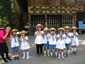 次の日は早起きをして、園庭で体操し、朝の気持ちの良い空気をいっぱい吸いました。