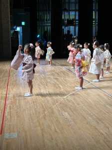 女の子のお遊戯「ブルーバード」は浴衣で踊りました。華やかで素敵です🌺