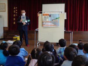 とても優しくわかりやすいお話で、子ども達も真剣にお話をお聞きし、楽しく学びながらもしっかりと交通安全について理解していました。