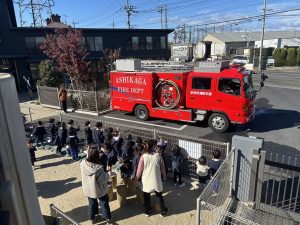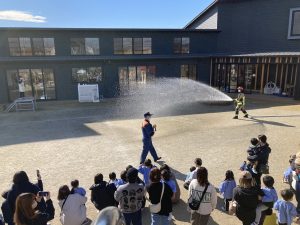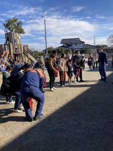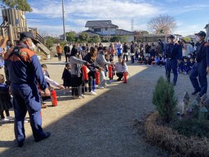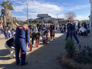 11月26日(木)消防訓練を行いました。今回は親子で訓練を行い河南消防署の皆様に様々なことを教えていただきました。