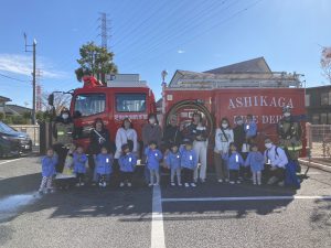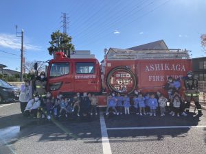 最後に消防車を見学させてもらい、記念写真を撮りました🚒 消防士さんとってもかっこよかったです⭐ ご飯をいっぱい食べてたくさん体を動かして消防士さんみたいになろうね✨