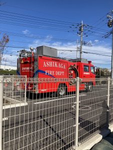 子ども達の大好きな消防車が幼稚園の駐車場に入ってくると子ども達は大興奮🚒 窓に張り付いて見ていました。