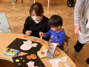 10月23日(木)第10回キッズクラブを行いました。今回はハロウィンの製作をみんなで楽しみました🎃