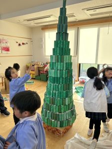 「大きなクリスマスツリーを作りたい」「大きな雪だるまを作りたい」「クリスマス会にサンタクロースさんとトナカイを呼びたい」と話がまとまりました。