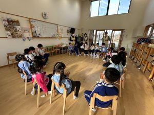 クリスマス会は子ども達のやりたい事いっぱいの行事になるように、どんなクリスマス会にしたいかサークルタイムで話し合いをしました。いろいろな意見を出してくれた子ども達。